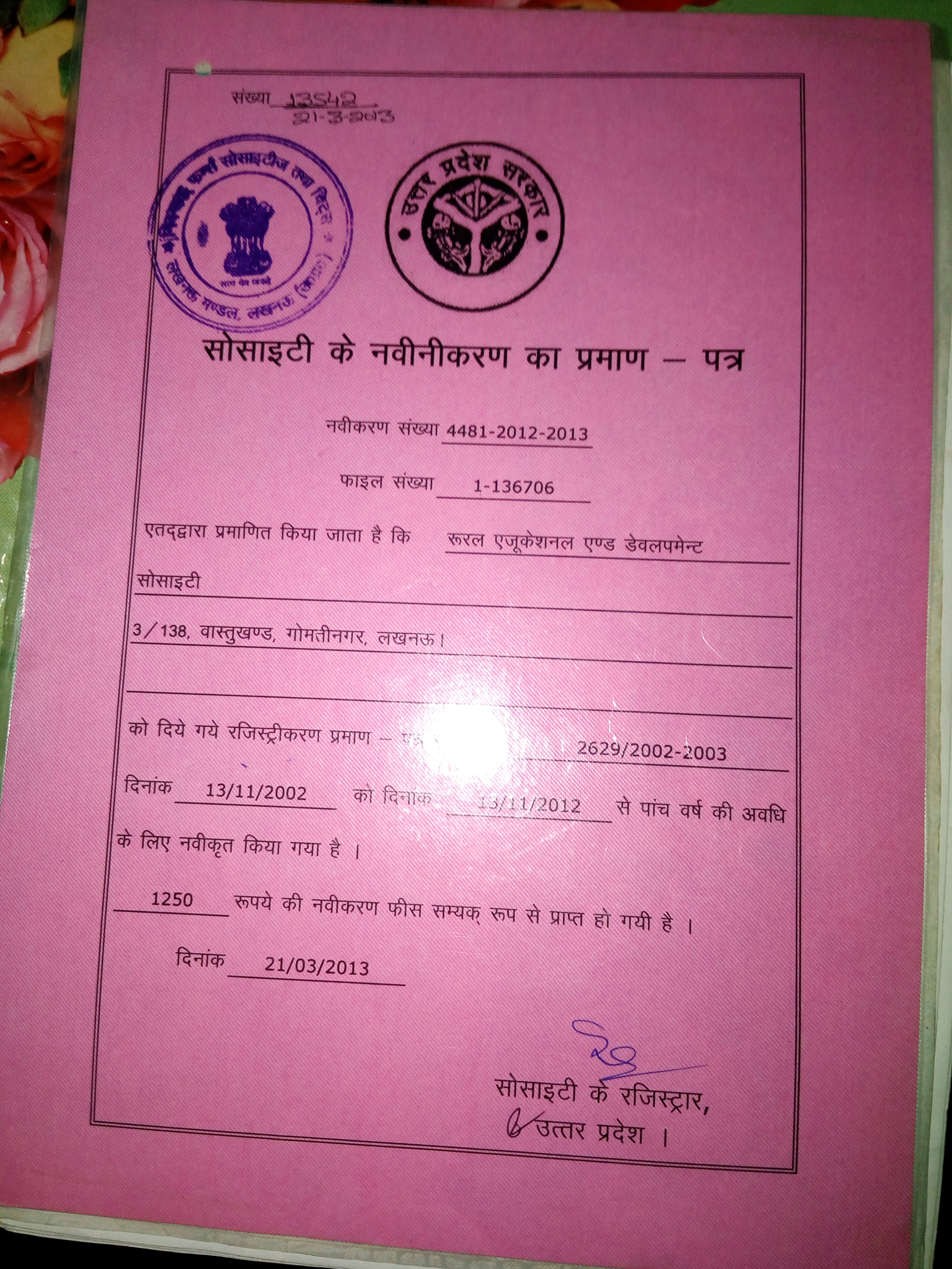 to keep handy, the registration certificate, mission/vision statements, logo, contact and remuneration details of team members